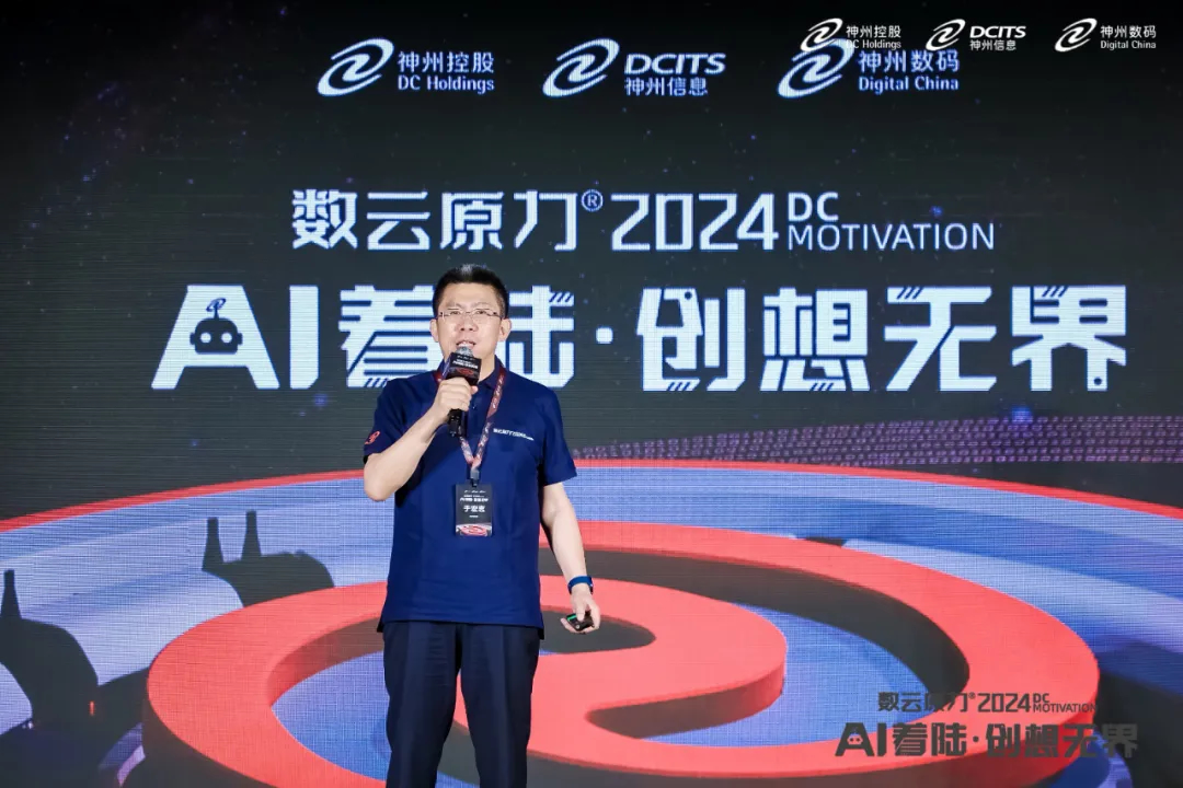 5月9日,在神州控股、神州信息、星空电竞集团联袂主办的数云原力®大会2024启幕仪式上,神州信息常务副总裁于宏志重磅发布面向金融的AI原生产品——九天揽月“AI+”。